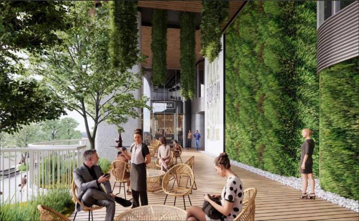 项目的食集也汲取阿姆斯特丹市集的设计灵感,在屋顶上打造天窗,在屋檐中留有特色城市观景台,在屋檐下构筑自然植物源,形成以人为中心,与绿植共处的社交空间。