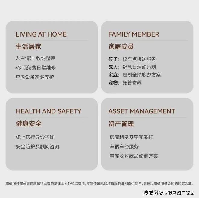 古北99迭代升级古北的生活方式,同源世界奢华酒店基因,从时间、空间、私属三个维度,共280余项标准化服务细则着手,打造自然无痕的服务内容;并充分考虑当代高净值业主需求,提供日常居家服务、健康安全、资产托管等增值服务,如包含儿童接送服务、入户保洁、43项免费日常维修、宠物托管、私人定制全球旅游方案、车辆养护代检等。