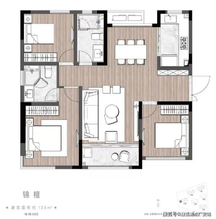 户型涵盖42-135㎡多元面积段,采用全明设计与动静分区,提升空间利用率与居住舒适度。
