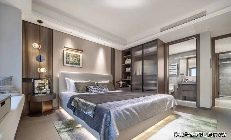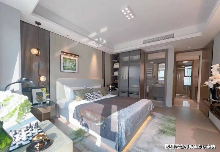主卧套房设计,带卫生间+飘窗,专属于主人的私密空间。 该户型无论是二胎家庭,或是三代同堂都有非常舒适的居住体验。