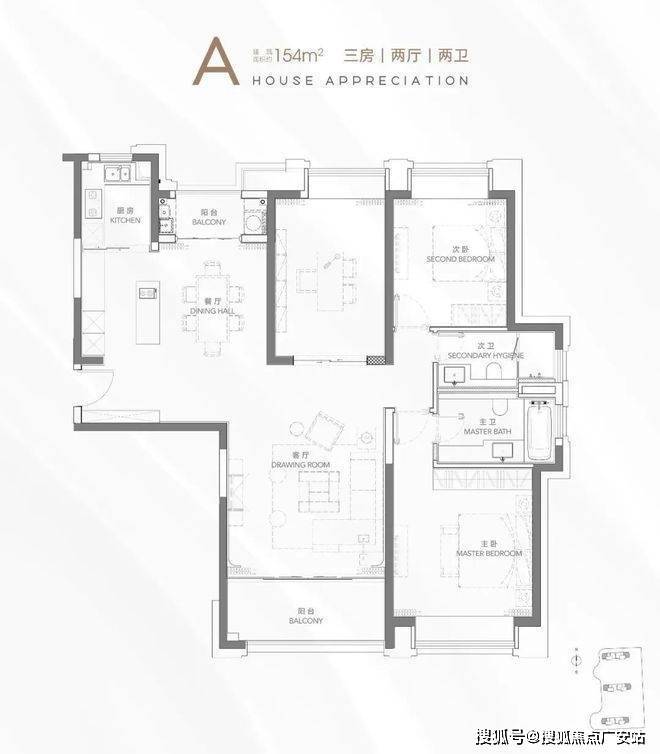 建面约154㎡ 3房2厅2卫▼