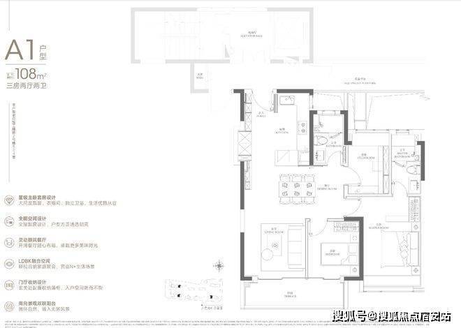 108㎡的入门级三房,起步门槛相比润府提高不少。