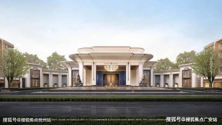 「玉兰门庭」摩登飘逸,环抱式落客前场,大师定制非遗掐丝珐琅门钹,流转温润光华,敬呈归家尊崇礼序,自此启幕生活的华贵序章。