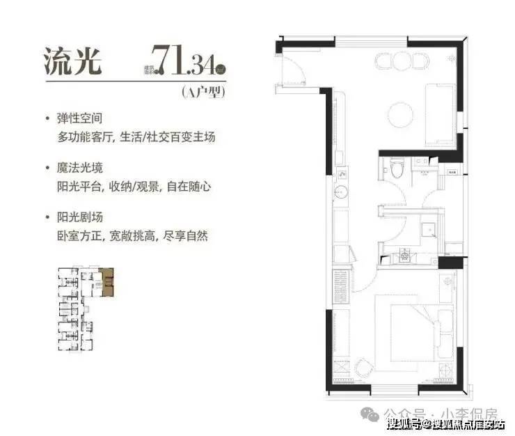 A|流光|建面约71.34m²|一室两厅一厨一卫