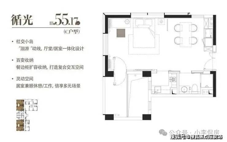 C|循光|建面约55.17m²|一室一厅一厨一卫