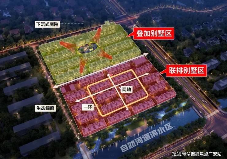 叠加别墅区以别致的下沉庭院为中心,向外延展,显著增强了居民的社区认同感和互动体验