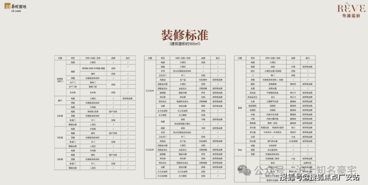 装标:精装标准约4000 元 /㎡,嘉格纳、杜拉维特、威能、大金等一线品牌