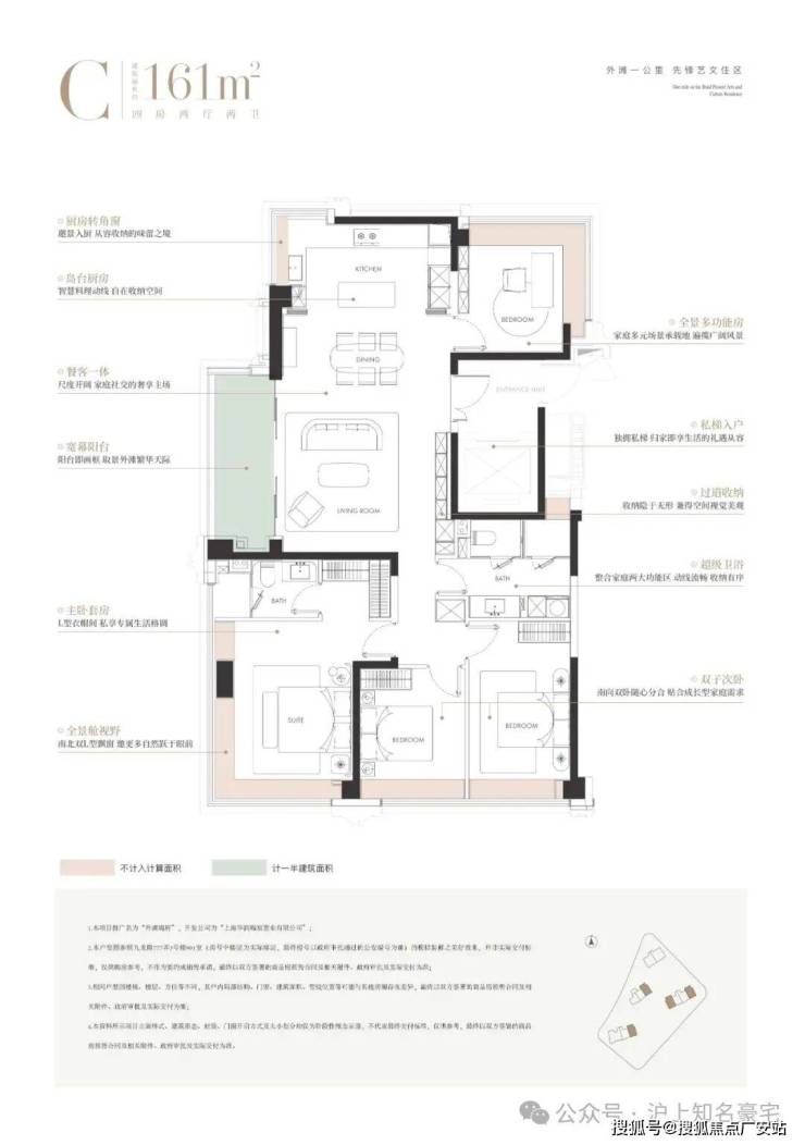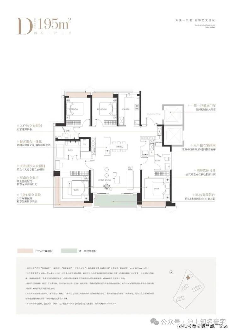 约 165㎡ 四房两厅三卫:总价 2000-2300 万,边套,南向面宽 14.5 米,双主卧套房