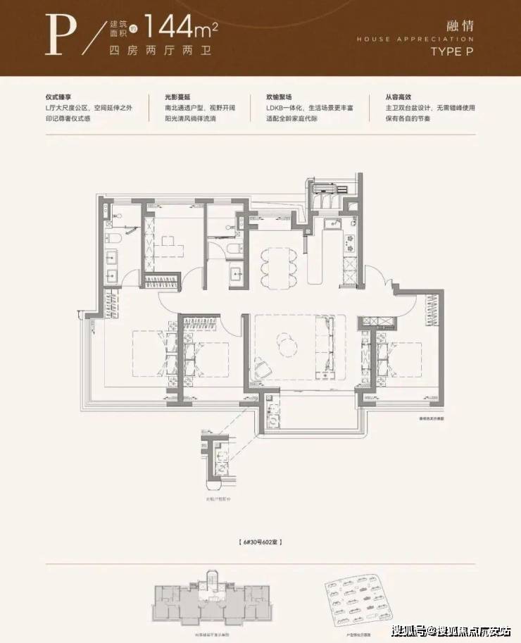 再来看下建面约144㎡4房,部分装标是有所升级的。
