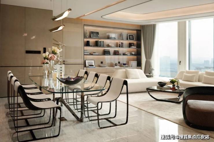约230㎡“钻石”三房户型,复刻兰博基尼跑车楔形空间,约10米的客厅面宽,大幅全景落地窗,宛如一键打开超跑的全景天窗和无框车门。