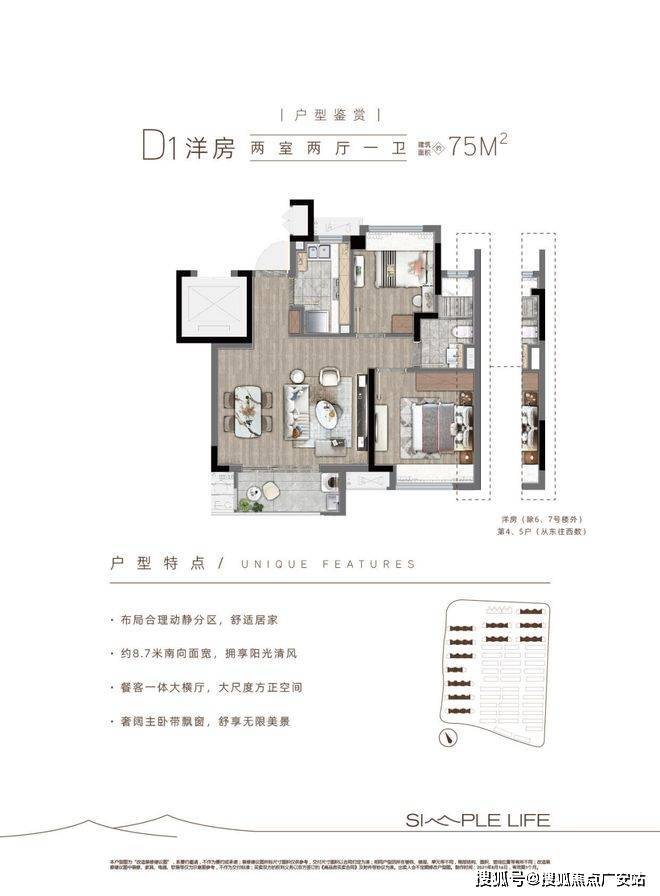 在售面积:洋房75㎡、联排89-109㎡
