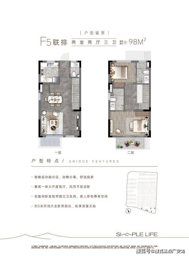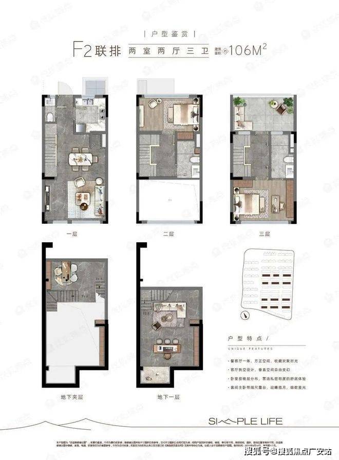 层高:洋房2.9米,联排客厅挑空约6米