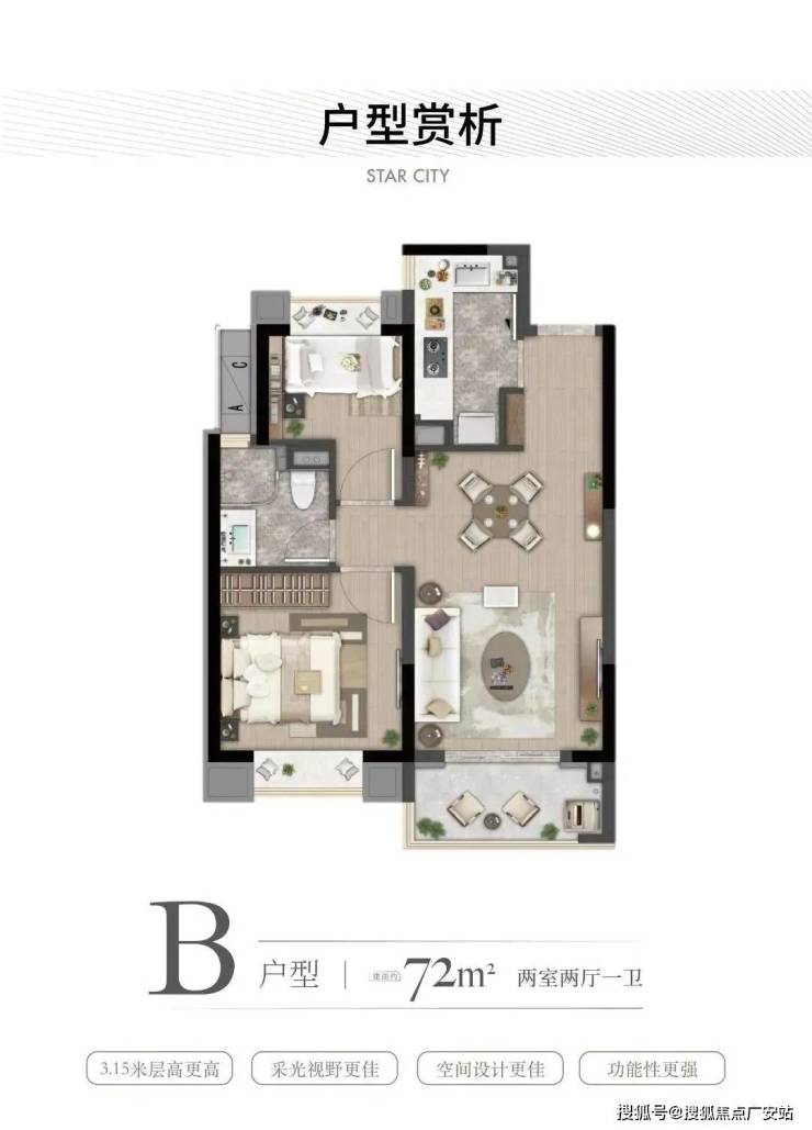 项目目前在售建面约72-88㎡2-3房,总价门槛较低。