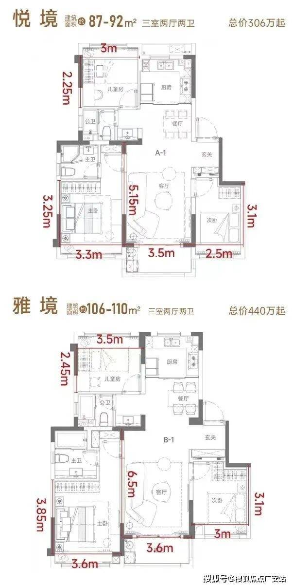 106–110㎡(三房两厅两卫,主力):总价 432–480 万,飞机户型,LDK 一体化