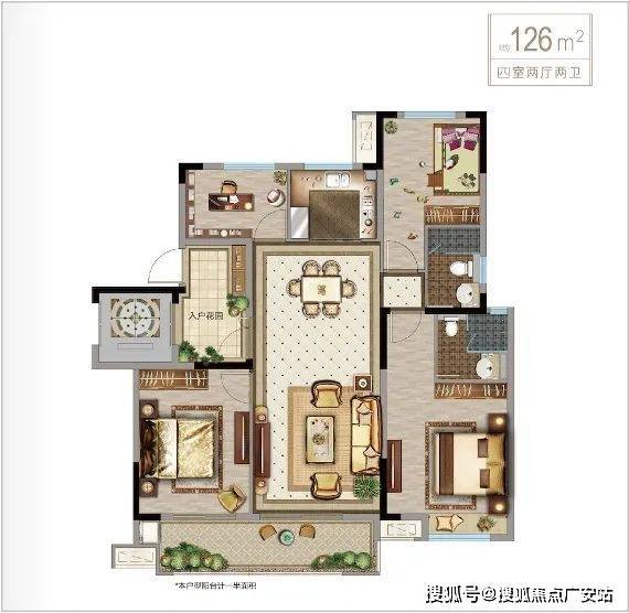 在产品设计,该户型打造4房2厅2卫的布局,约7米大横厅外接同尺度大阳台,主卧套房设计带有独立的衣帽间和卫生间,让生活有效避免了时间紧迫的情况下多个人等待一间卫浴的情况。