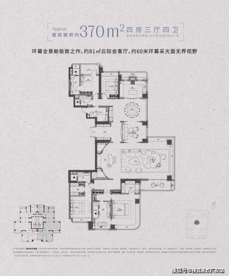 三、户型:高得房率 + 环幕视野,顶豪空间革命