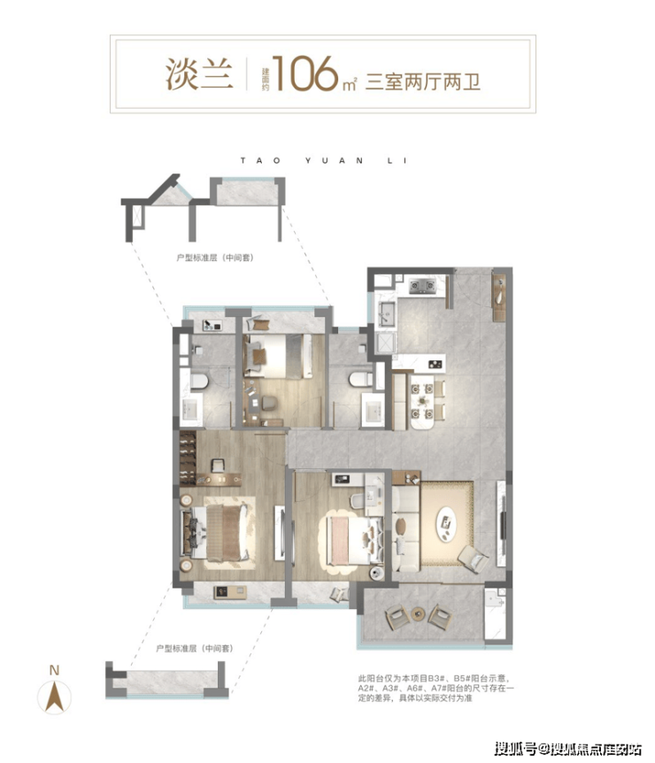 南地块168套,户型为:建筑面积约106㎡、166㎡