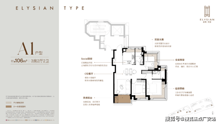 其中,建面约106㎡户型主卧飘窗为约270°转角飘窗!