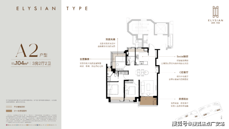 保利天奕的百平三房做了两个,分别是建面约106㎡边套户型和建面约104㎡中间套户型,总价低至7字头。