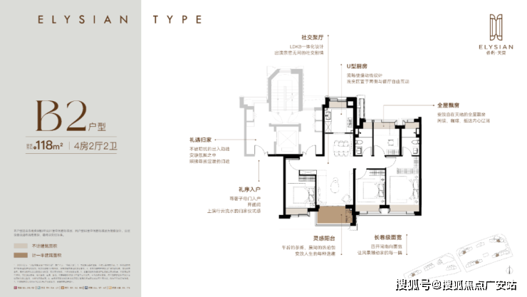 这个户型堪称保利天奕的王炸户型:四开间朝南+北通透+约270度转角阳台+8-9个飘窗设计……