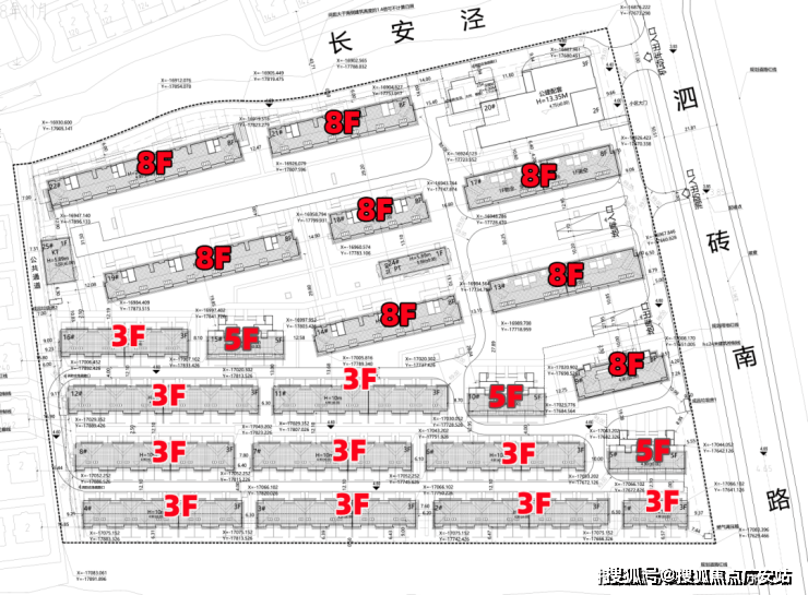 项目规划设计图已经公示,拟建10栋3F别墅,3栋5F叠加别墅以及7栋8F洋房。