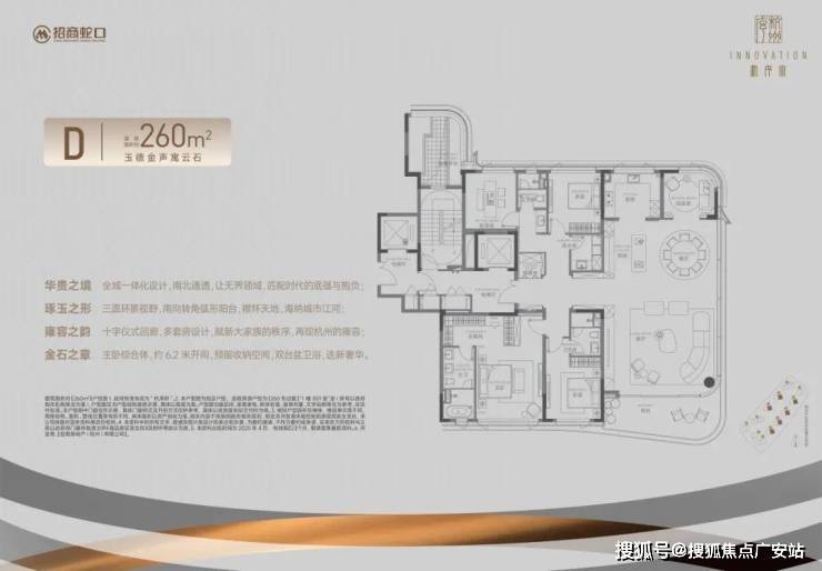 尤其是建面约260方户型,项目打造无界弧形客厅,外接浮岛式阳台,采用无柱曲面玻璃,消除传统立柱对视线的切割。