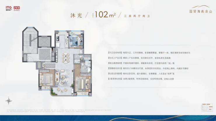 4、另有102㎡爆款伴墅平层,彰显真正的三房尺度