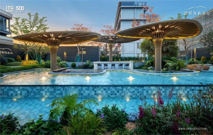 一心:建筑面积约1600㎡度假酒店中岛,打造大隐于翠的梦想桃源。中岛内拥有海岛风层叠水池、社交客厅以及庭院架空层,加上约50年树龄的乌柏点缀,共鸣多样化松弛生活场景。