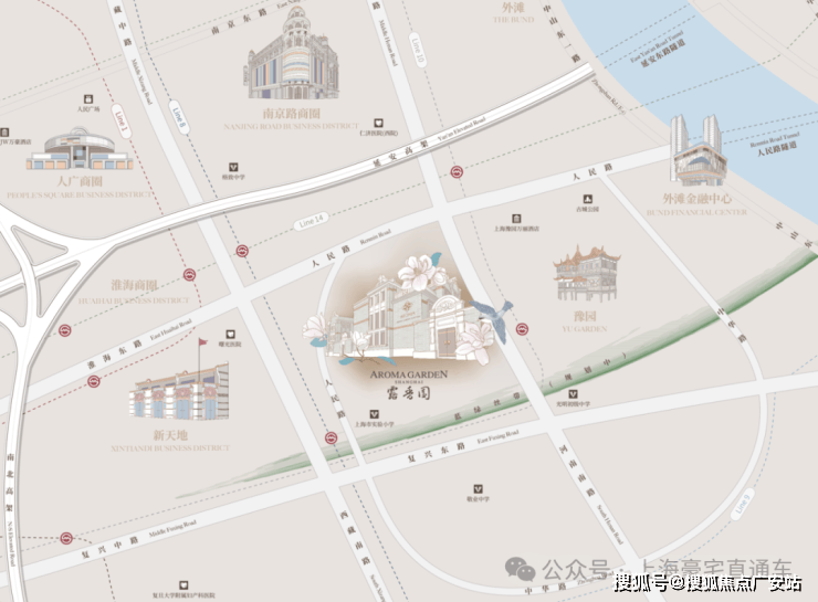 作为上海的绝对市心,露香园直线距离人民广场、淮海路、外滩、豫园等上海市地标性区域均不超过1.5公里,距离陆家嘴直线约2公里。