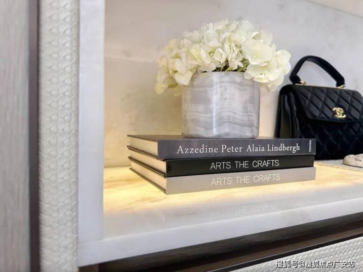 入户玄关,采用黄金白玉的台面,打开灯光立马呈现出宫廷的视觉感,配上BV式的皮革包边,顶豪的即视感也不过如此。