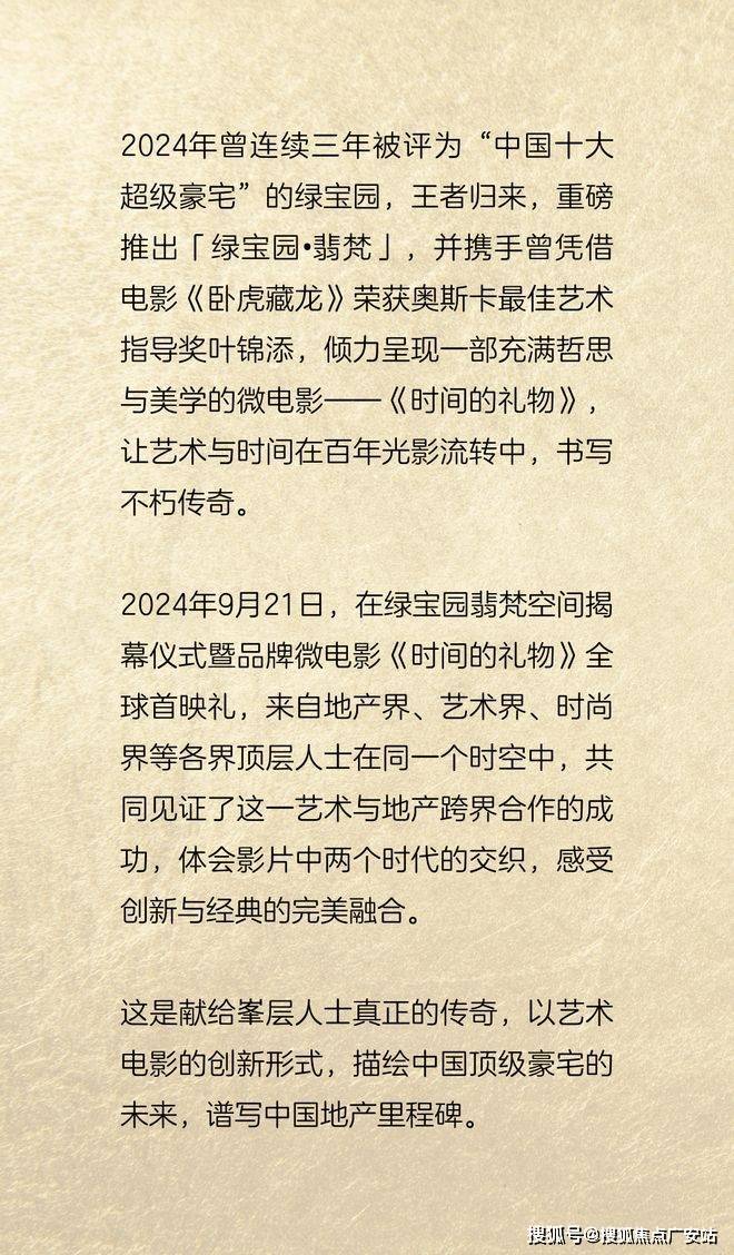 由画卷缓缓展开,21世纪的今天,我们见证了一个传奇的诞生——绿宝园·翡梵,38席绝无仅有的亿元级独栋别墅,以超越时间和潮流的居所概念,用五个传世之魂和价值在时间长河中,让真正的家族记忆与荣耀得以传承。