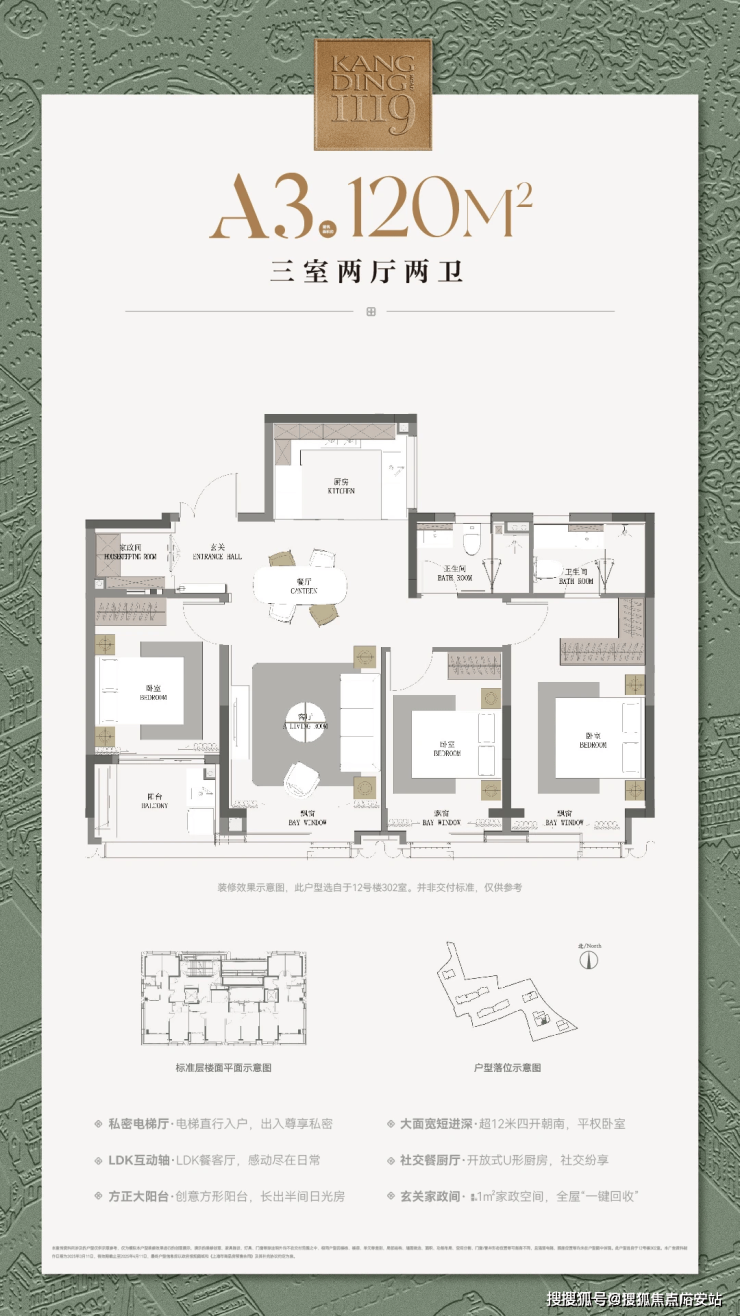 产品力才是硬通货!康定壹拾玖的户型精准拿捏改善家庭需求,120-238㎡全周期精装奢邸,装修标准高达1.8万/㎡,对标顶豪配置,厨房配备博世六件套(油烟机、燃气灶、洗碗机等)、铂浪高水槽;主卫采用进口大理石,搭配汉斯格雅恒温花洒、杜拉维特智能马桶,部分户型还带独立浴缸;全屋标配三菱重工中央空调、威能地暖、霍尼韦尔新风系统,还搭载全屋智能控制系统,细节质感拉满。重点拆解两个爆款户型,宝子们对号入座: