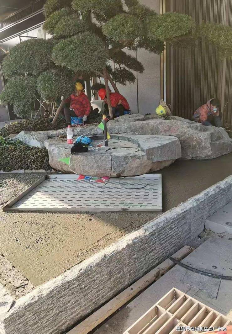 本次甄选石材主要为中国黑,沉稳现代,是近年地产景观常用的置石品种,由泉石汇提供。经过多轮选石比对,最终确定加工,有水景水钵、置石卡角树围等不同类型。