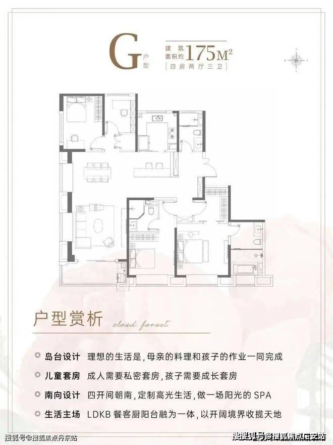 建面约175m²4房2厅3卫户型▼