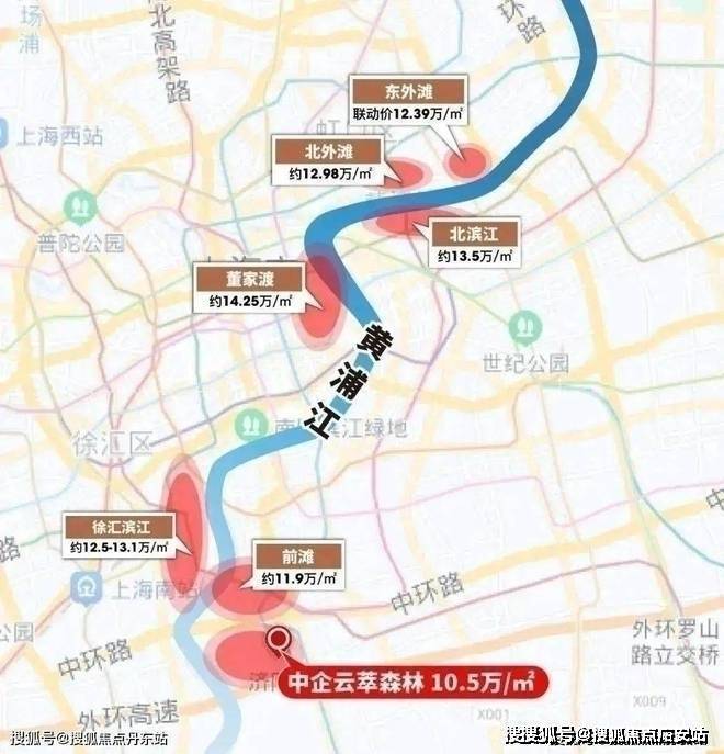 论居住价值、论地段价值、论规划潜力、论发展资源倾斜程度,黄浦江沿岸永远都站在上海无法逾越的高空之上。这点从沿岸的新房价格中就能看出来: