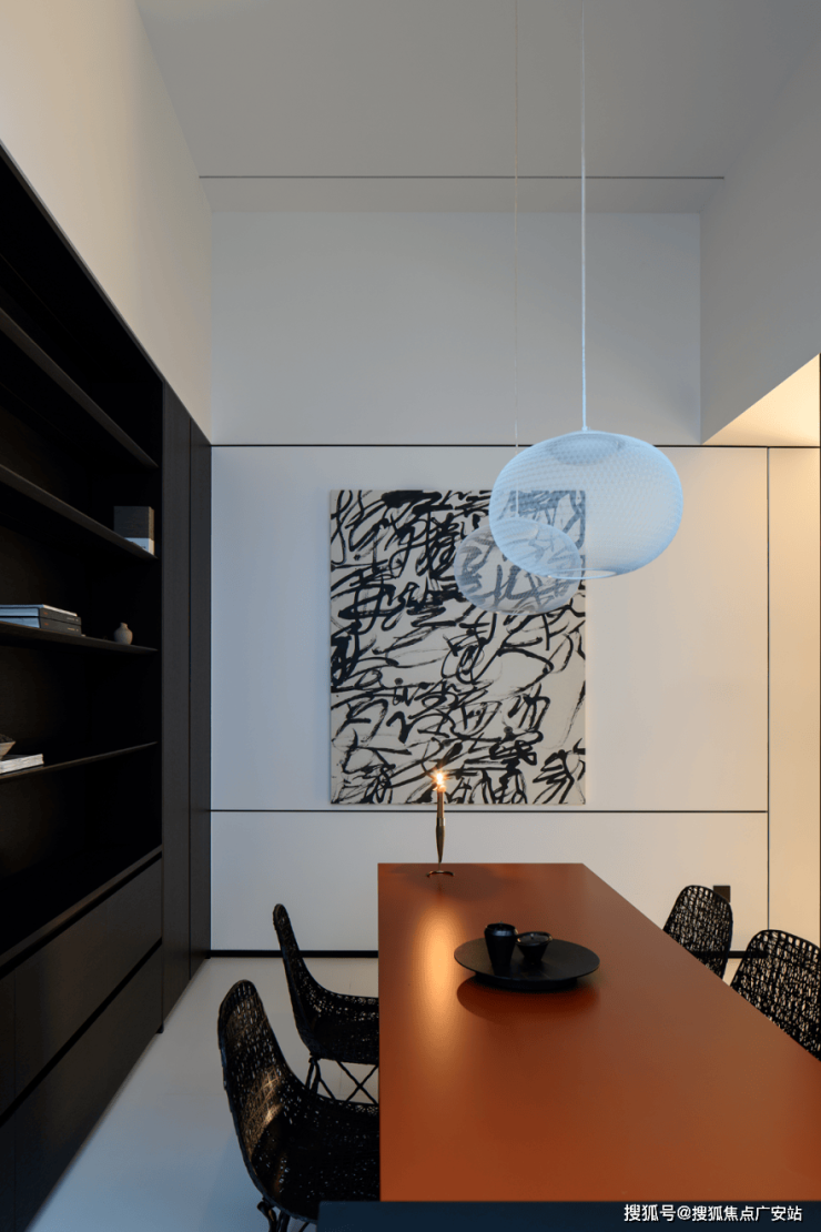 整个空间以静、雅、柔传达着家的精气神儿,黑白的交错,棱角的柔和,都是家的本色,都是极简的象征。