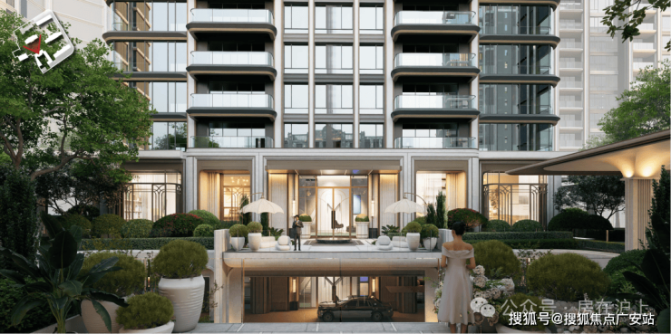 此次住宅项目外立面采用浅色石材、香槟金铝板与LOW-E玻璃的组合,实现四面立面的美学统一。