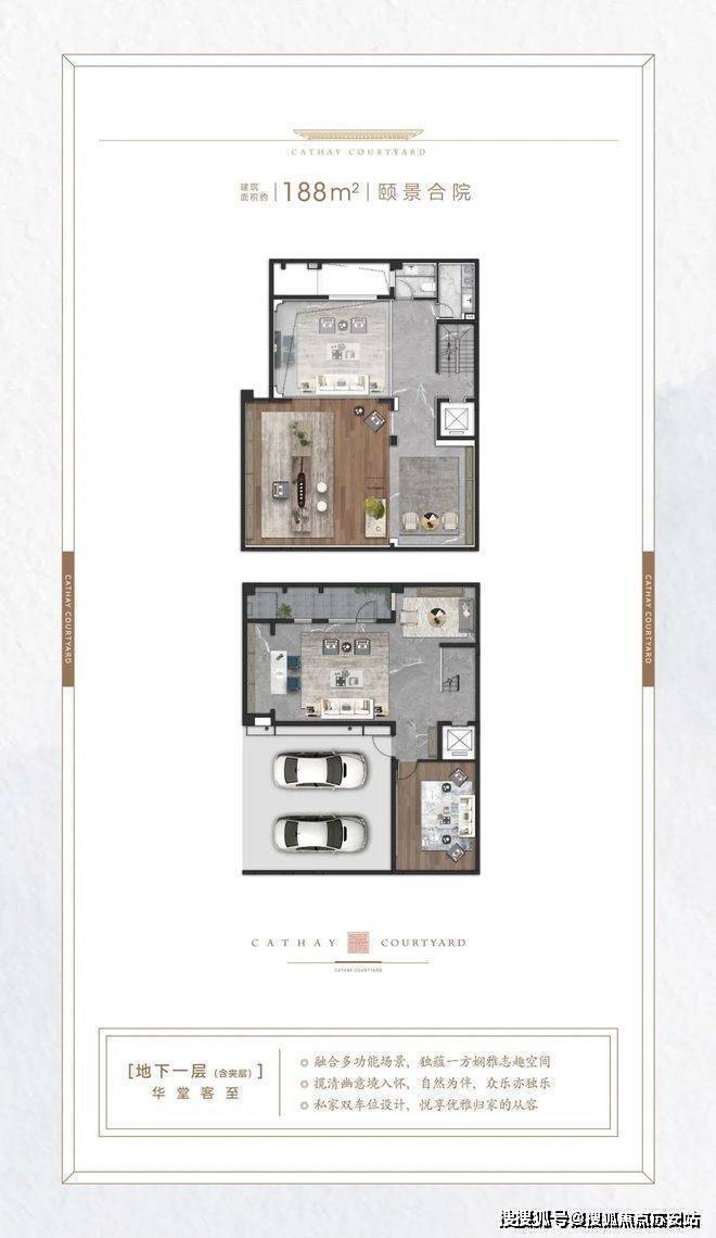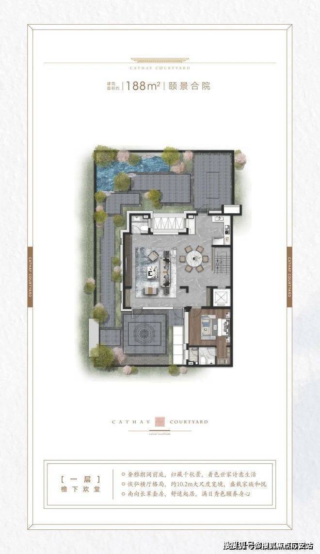 户型特点:独门独户独院设计,配备 50-80 平方米私家庭院,附赠地下室、露台等空间。99 平合院实际使用面积约 270-330 平,126 平合院实际使用面积约 300-370 平,188 平合院实际使用面积约 430-520 平。