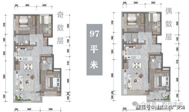 龙湖观萃每个户型都有户外阳台,奇偶式阳台布局,挑高6米。