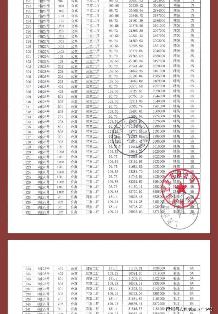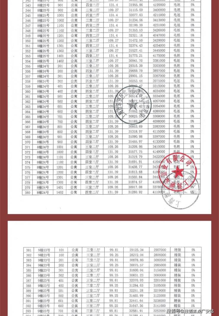 一房一价表: