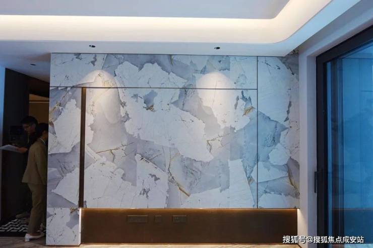 客厅则是弧形转角的悬浮吊顶,无主灯设计,电视机背景墙也是大块的岩板。安高申陇院售楼处电话📞400-8118-224如有问题欢迎来电咨询,来电即可享受买房优惠!