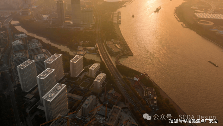 保利·世博天悦的用地,是世博会遗留下来的唯一的住宅用地。离江只有80米,两段s弯,一头直面世博滨江、回头便是陆家嘴!