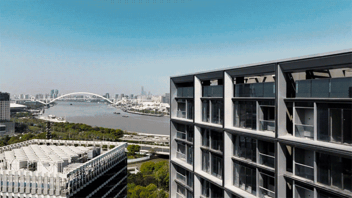 一线江景:距黄浦江仅约150米(一条世博大道之隔),部分楼栋采用21度黄金倾斜角排布,高区可享270度双面江景。