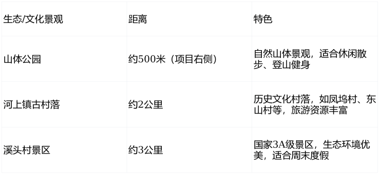 养老/度假需求:项目右侧紧邻山体,周边自然环境优美,适合养老或周末度假居住