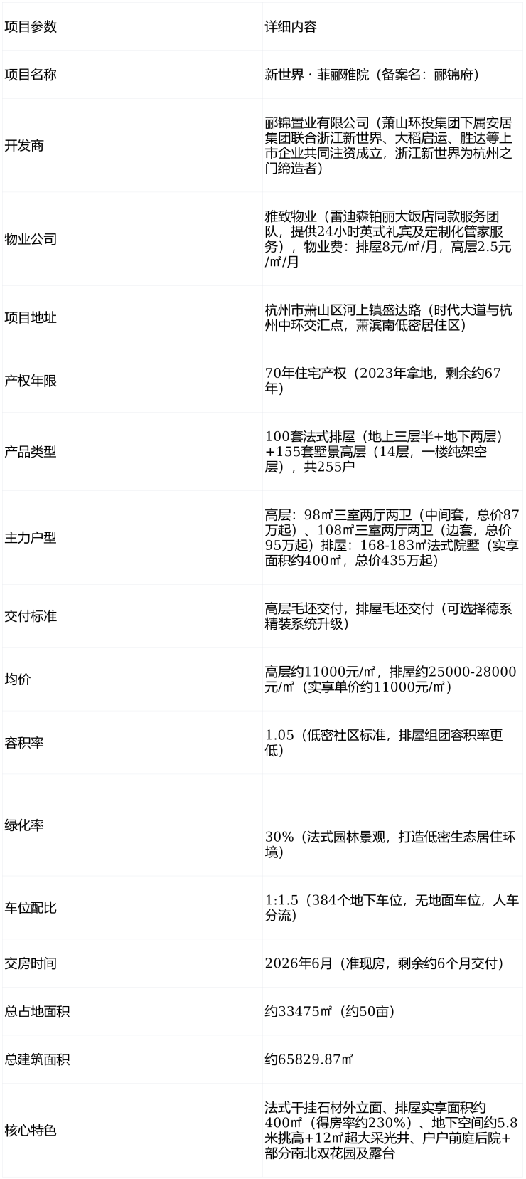 🏡低密稀缺性:容积率仅1.05,是杭州萧滨南区域罕见的低密社区,法式排屋+墅景高层组合,居住舒适度高
