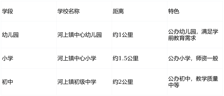 🏫教育资源有限:河上镇教育资源相对薄弱,缺乏优质中小学,对重视子女教育的家庭吸引力不足