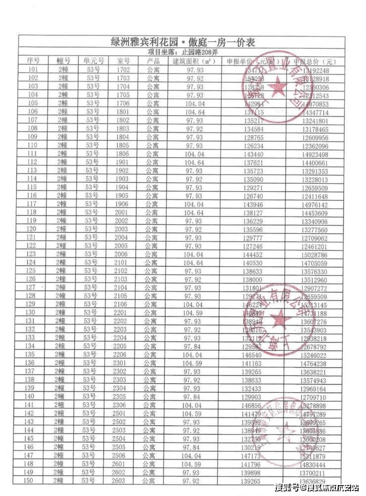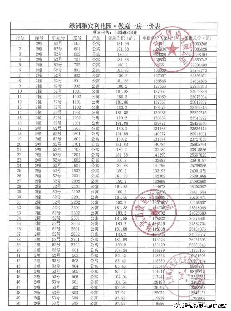 一房一价表发布