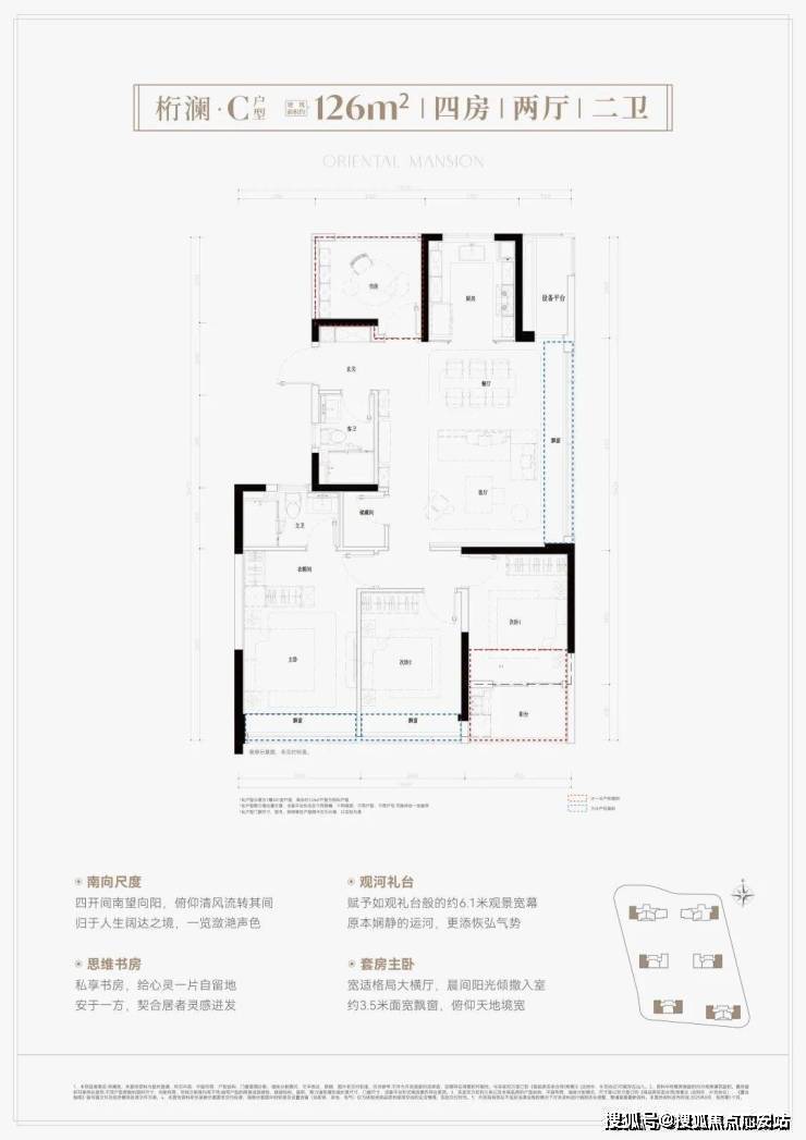 建面约126方4房2卫,270°稀缺边套四房