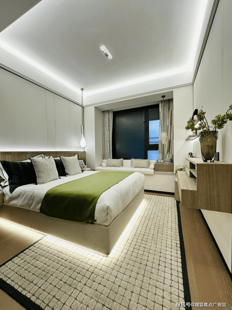 三开间朝南+大尺度景观阳台,视野开阔,全明通透,享受四季温馨阳光。卧室飘窗设计,进行个性化的装点,成为一方专属空间。
