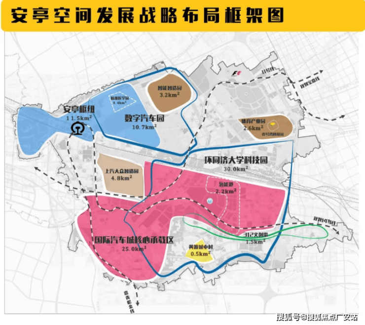 在嘉定构建“一核一枢纽、两轴四片区”的新格局中,安亭枢纽,同时占据了枢纽和沪宁发展轴。
